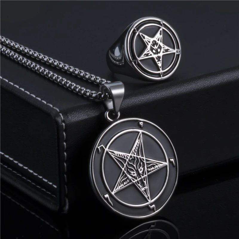 men pentagram ring